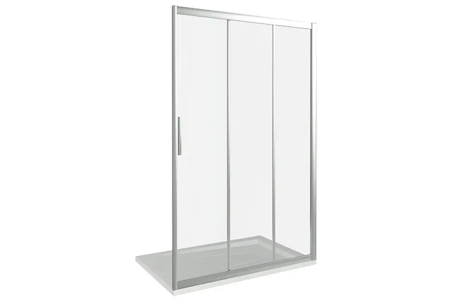 Душевая дверь Bas Orion обладает размером 130х185 см. Конструкция состоит из трех секций: одной неподвижной и двух раздвижных. Устанавливается в облицованный кафелем угол или нишу ванной комнаты на поддон или непосредственно на пол со встроенным душевым каналом или трапом