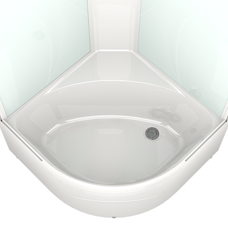Душевая кабина Domani-Spa Delight Slim DS01DS99HWM10 имеет размеры 90х90 см. Форма — четверть круга, профиль белый, исполнение полотна двери матовое. Механизм открывания раздвижной. Поддон высокий и белая стеклянная задняя панель.