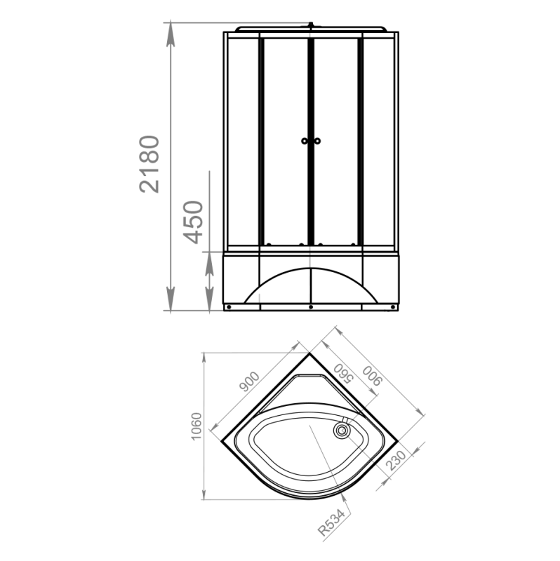 Габариты 90 × 90 × 218 см