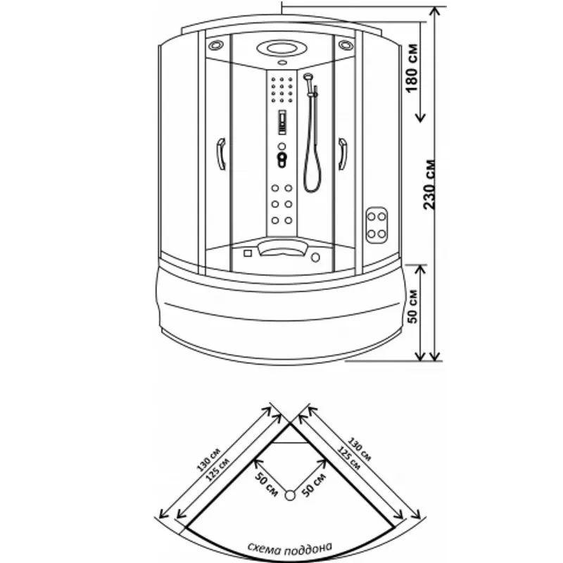 | Габариты | 130 × 130 × 230 см |
