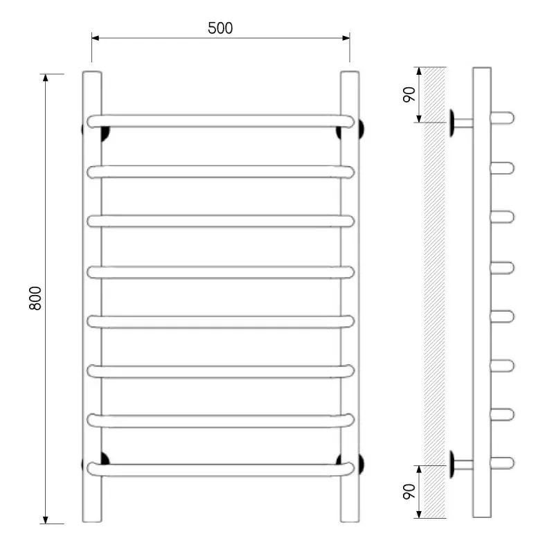 Полотенцесушитель водяной Laris Стандарт с высотой 80 см., используется для обогрева и сушки помещения. Боковое подключение. Изготовлен из нержавеющей стали.