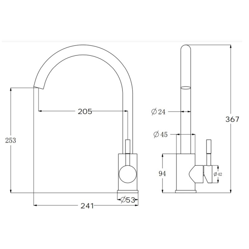 Смеситель для кухни Esko Kitchen K45 White имеет поворотный излив. Изготовлен из качественной латуни и имеет защитное покрытие, что способствует устойчивости к коррозии и резким перепадам температуры. Рычажное управление, горизонтальный монтаж на одно отверстие.