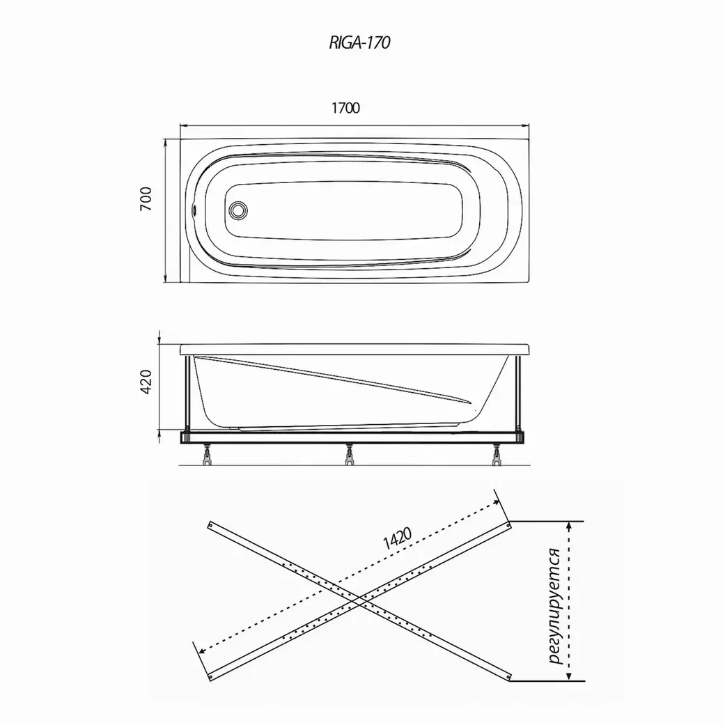 Акриловая ванна Triton из коллекции Рига имеет размер 170х70 см. Форма прямоугольная. Страна изготовитель — Россия. Каркас и установочный комплект, слив-перелив не входит в базовую комплектацию и приобретается отдельно. Дополнительно комплектуется смесителем, передней и(или) боковой панелью.