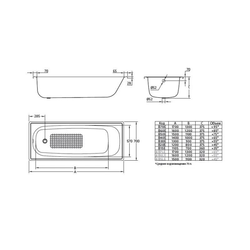 Ванна стальная BLB из коллекции Europa имеет размер 140х70 см. Форма прямоугольная. Ножки, установочный комплект, слив-перелив не входит в базовую комплектацию и приобретается отдельно. Дополнительно комплектуется смесителем, передней и(или) боковой панелью.